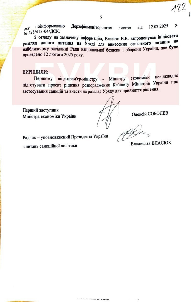 Виданню з власних джерел вдалось отримати документи, на підставі яких Мінекономіки звернулось до РНБО з поданням про запровадження санкцій.