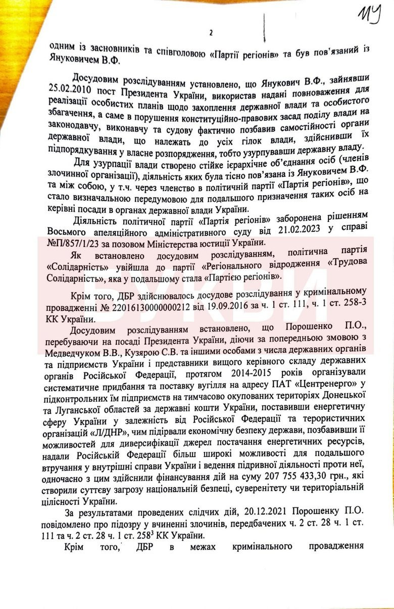 "Свою позицію слідство обґрунтовує тим, що Петро Порошенко впродовж кількох тижнів після початку каденції Януковича продовжував виконувати обов’язки міністра закордонних справ, до формування уряду Миколи Азарова. При цьому, угоди були підписані Януковичем і Мєдвєдєвим та зі скандалом ратифіковані Верховною Радою вже після відставки Порошенка. У цій справі ситуація аналогічна – є широко розтиражована в анонімних Telegram-каналах позиція слідства, однак немає жодного вироку суду", - додають "Букви".