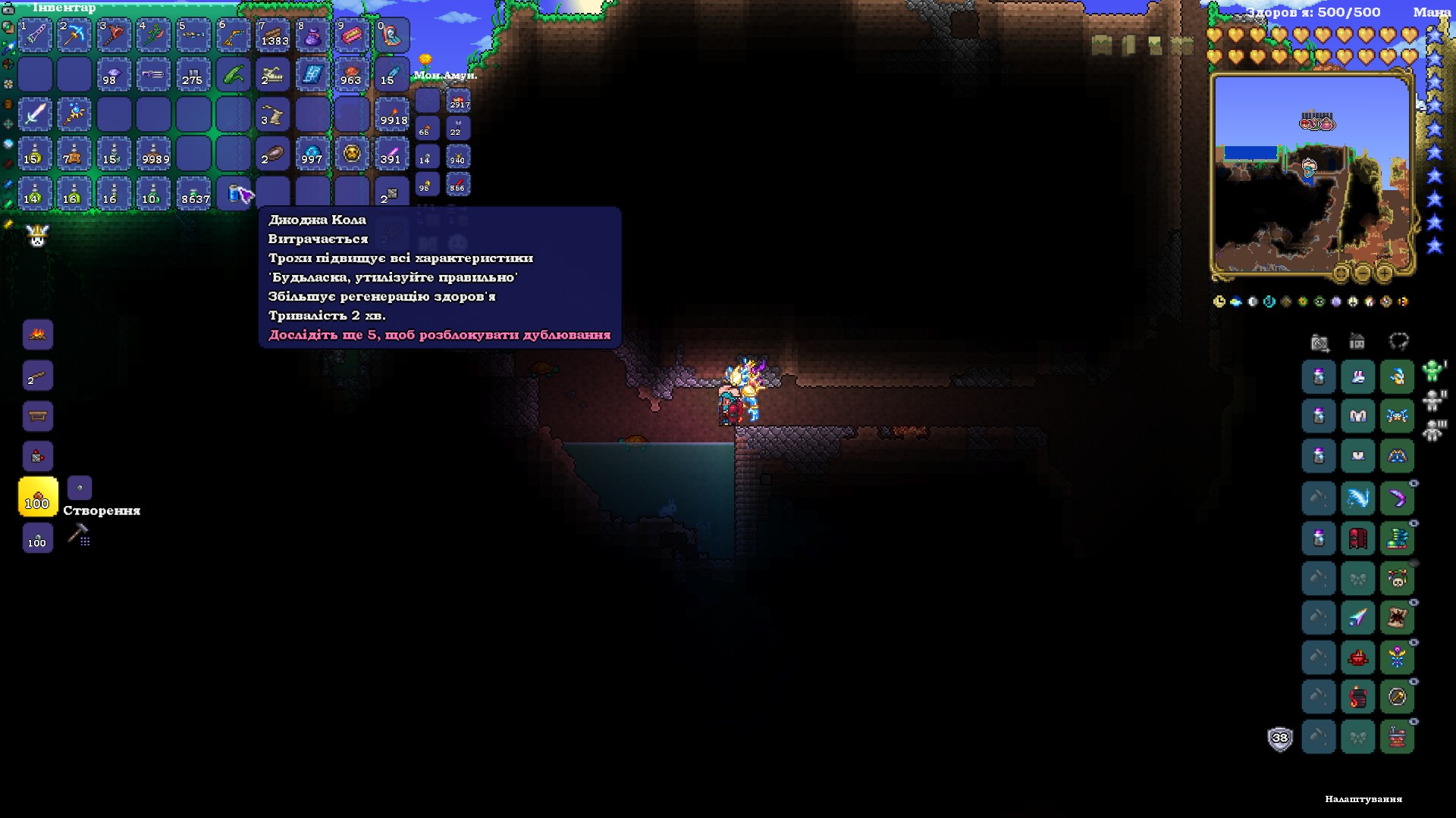 Вашій увазі пропонується Українізатор Террарія. Переклад нарешті завершено на 100%. Дякую усім хто тестував модифікацію, коли тривав переклад. Якщо сподобався переклад, чекатиму вподобайку. Якщо є зауваження, чекатиму ваших пропозицій в обговореннях модифікації (Пропозиції або Помилки).
